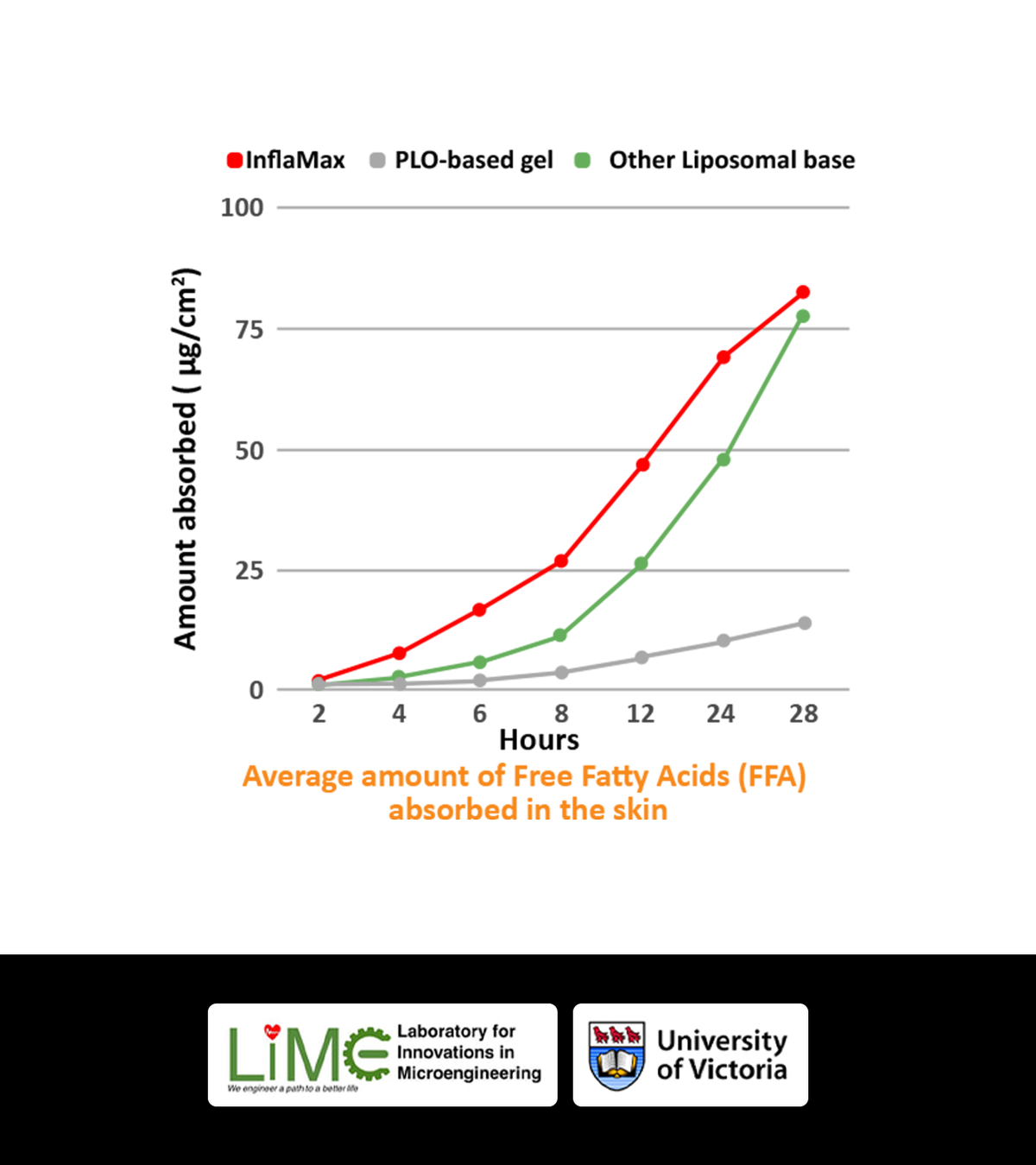 Based on clinical data, InflaMax™ utilizes the TD Lipo™ delivery system to ensure active ingredients don't just sit on the skin surface. Research from the University of Victoria demonstrates that this system significantly enhances skin absorption and retention.